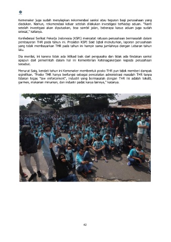 pembayaran THR pada tahun ini. Presiden KSPI Said Iqbal menuturkan, laporan perusahaan
