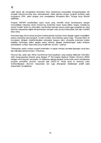 Menurut Ida, salah satu ikhtiar transformasi kewirausahaan yang sedang dilakukan Kemnaker