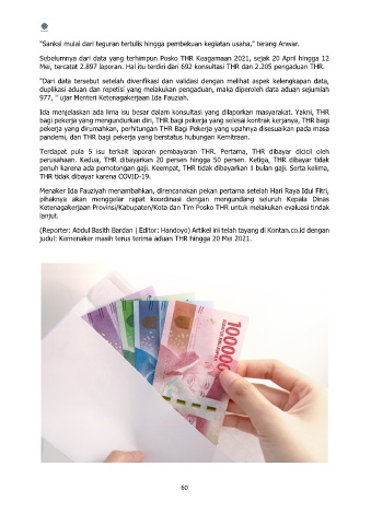 judul: Kemenaker masih terus terima aduan THR hingga 20 Mei 2021.