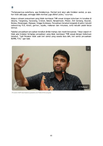 tersebut, "Jadi Menaker tidak usah beri sanksi yang swasta dulu deh, beri sanksi perusahaan