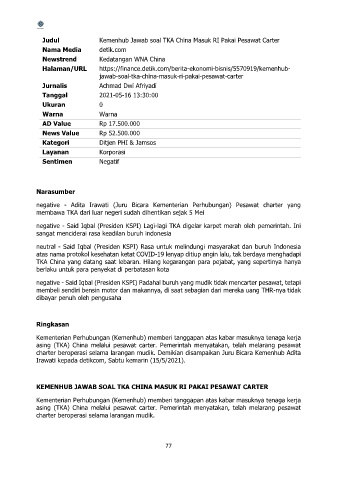 negative - Adita Irawati (Juru Bicara Kementerian Perhubungan) Pesawat charter yang