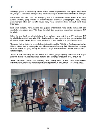 tersebut bekerja. Oleh karena itu, KSPI dan buruh Indonesia menuntut stop mendatangkan TKA