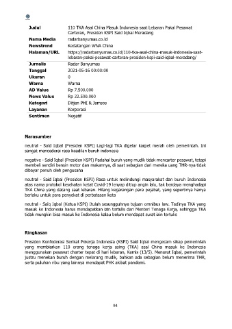 negative - Said Iqbal (Presiden KSPI) Padahal buruh yang mudik tidak mencarter pesawat, tetapi