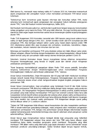 Oleh karena itu, memasuki masa rentang waktu H-7 Lebaran 2021 ini, Kemnaker memperkuat