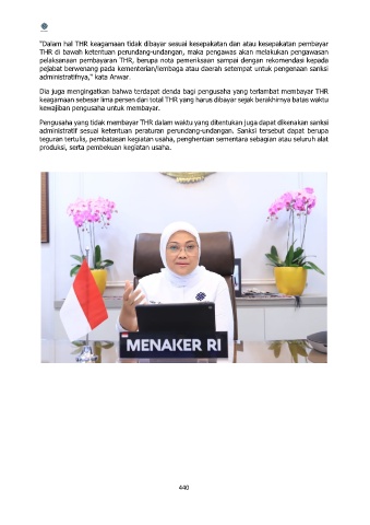 "Dalam hal THR keagamaan tidak dibayar sesuai kesepakatan dan atau kesepakatan pembayar
