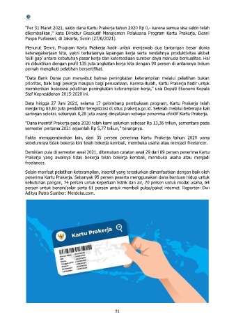 "Per 31 Maret 2021, saldo dana Kartu Prakerja tahun 2020 Rp 0,- karena semua sisa saldo telah