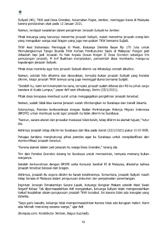 Namun, terdapat kesalahan dalam pengiriman Jenazah Suliyati ke Jember.