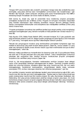 antara lain reformasi birokrasi, ekosistem digital siap kerja, transformasi BLK, link and match