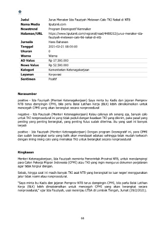 Judul Jurus Menaker Ida Fauziyah Melawan Calo TKI Nakal di NTB