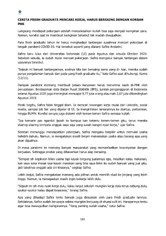 hingga BUMN. Kondisi serupa juga dialami oleh teman-teman Safira semasa kuliah.