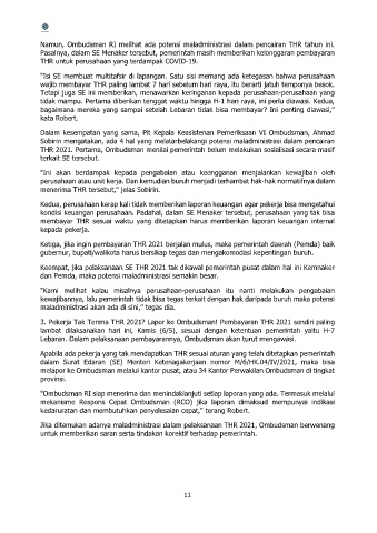 Jika ditemukan adanya maladministrasi dalam pelaksanaan THR 2021, Ombudsman berwenang