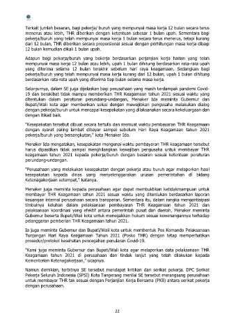19 dan berakibat tidak mampu memberikan THR Keagamaan tahun 2021 sesuai waktu yang