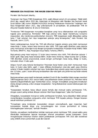 dicicil lagi, seperti tahun 2020 lalu. Ketentuan ini ditegaskan oleh Menaker Ida Fauziyah lewat
