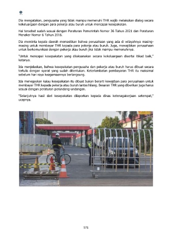Dia mengatakan, pengusaha yang tidak mampu memenuhi THR wajib melakukan dialog secara