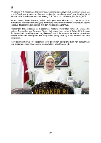 raya keagamaan pekerja/buruh yang bersangkutan," jelas Menaker Ida.