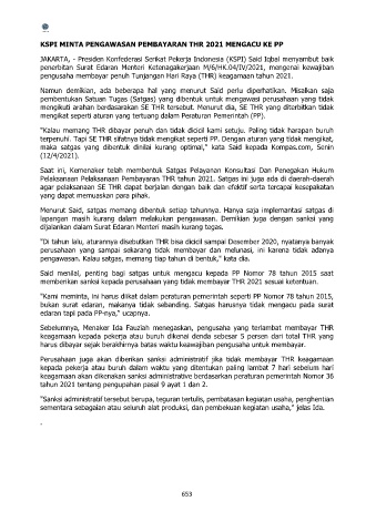 KSPI MINTA PENGAWASAN PEMBAYARAN THR 2021 MENGACU KE PP