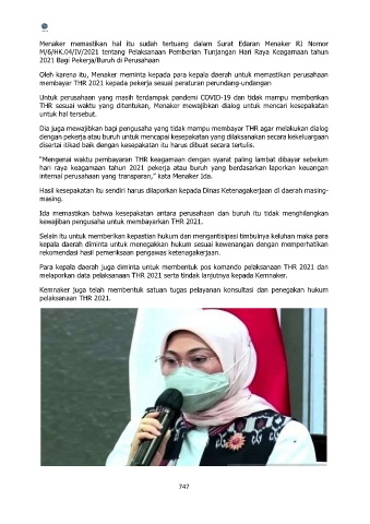 melaporkan data pelaksanaan THR 2021 serta tindak lanjutnya kepada Kemnaker.