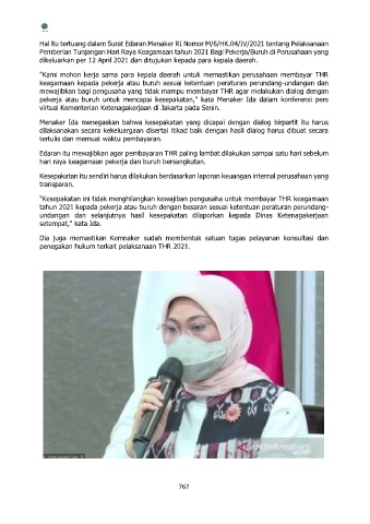 Hal itu tertuang dalam Surat Edaran Menaker RI Nomor M/6/HK.04/IV/2021 tentang Pelaksanaan