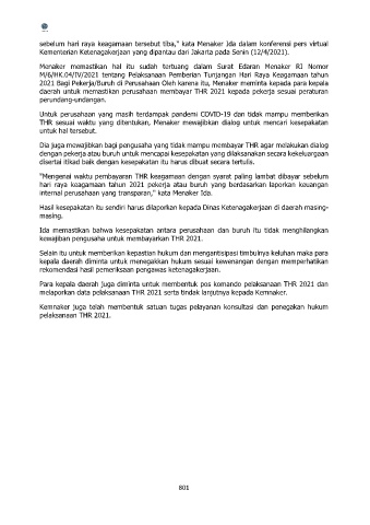 sebelum hari raya keagamaan tersebut tiba," kata Menaker Ida dalam konferensi pers virtual