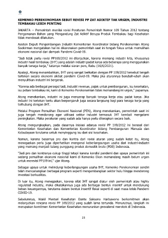 KEMENKO PEREKONOMIAN SEBUT REVISI PP ZAT ADIKTIF TAK URGEN, INDUSTRI