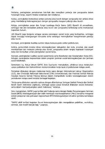 Ketiga, peningkatan peran dan fungsi Lembaga Kerja Sama (LKS) Bipartit di perusahaan,