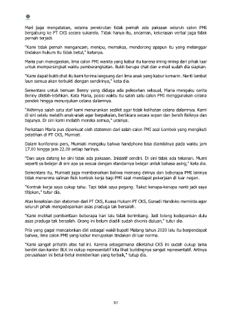 Sementara untuk temuan Benny yang diduga ada pelecehan seksual, Maria mengaku cerita