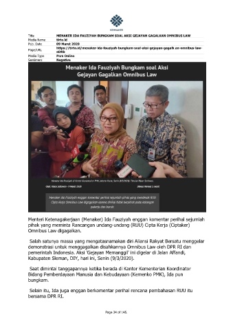 Title MENAKER IDA FAUZIYAH BUNGKAM SOAL AKSI GEJAYAN GAGALKAN OMNIBUS LAW