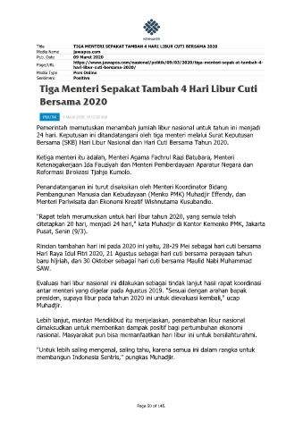 Title TIGA MENTERI SEPAKAT TAMBAH 4 HARI LIBUR CUTI BERSAMA 2020