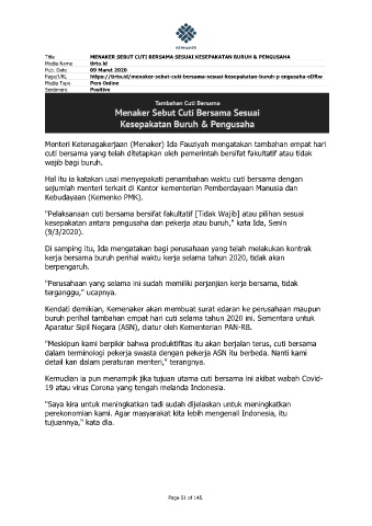 Title MENAKER SEBUT CUTI BERSAMA SESUAI KESEPAKATAN BURUH & PENGUSAHA