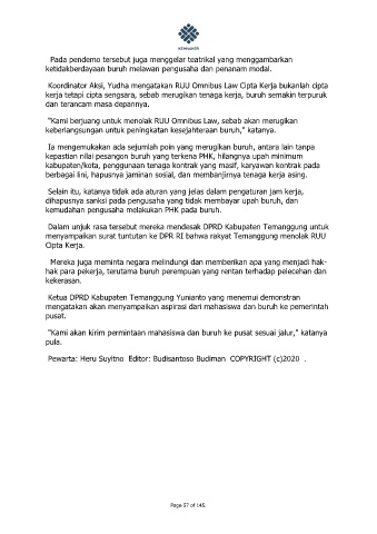 Koordinator Aksi, Yudha mengatakan RUU Omnibus Law Cipta Kerja bukanlah cipta
