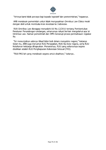 ARB mendesak pemerintah untuk tidak mengesahkan Omnibus Law Cilaka meski