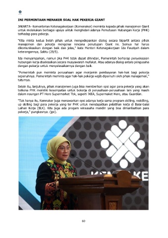 INI PERMINTAAN MENAKER SOAL HAK PEKERJA GIANT