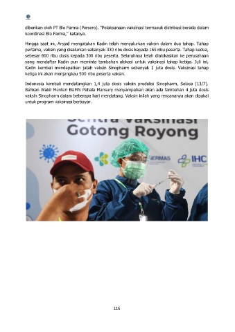 diberikan oleh PT Bio Farma (Persero). "Pelaksanaan vaksinasi termasuk distribusi berada dalam