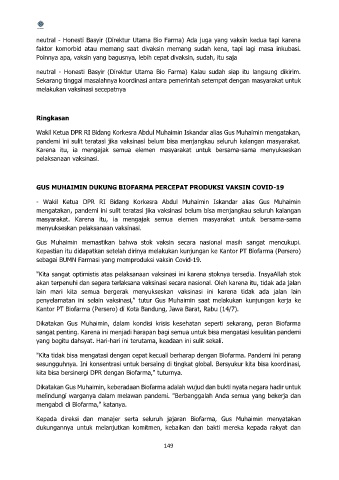 neutral - Honesti Basyir (Direktur Utama Bio Farma) Ada juga yang vaksin kedua tapi karena