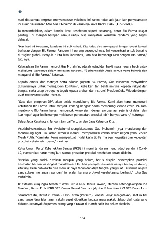 di tingkat global. Bersyukur kita bisa koordinasi, kita bisa bersinergi DPR dengan Bio Farma,"