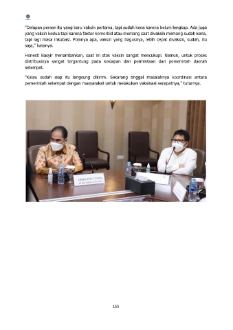 Honesti Basyir menambahkan, saat ini stok vaksin sangat mencukupi. Namun, untuk proses