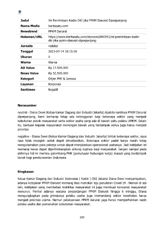 neutral - Diana Dewi (Ketua Kamar Dagang dan Industri Jakarta) Apabila nantinya PPKM Darurat
