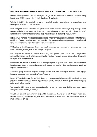 MENAKER TINJAU VAKSINASI KEDUA BAGI 2.000 PEKERJA RITEL DI BANDUNG
