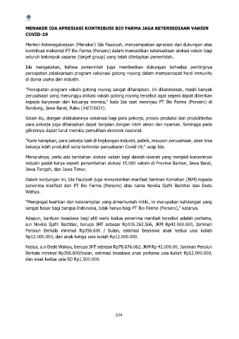 kepada karyawan dan keluarga mereka," kata Ida saat meninjau PT Bio Farma (Persero) di