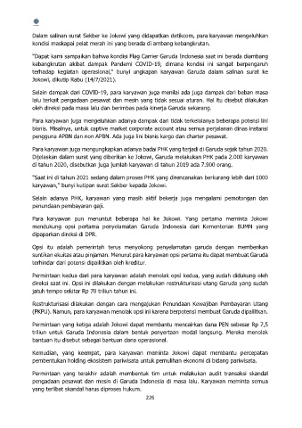 terhadap kegiatan operasional," bunyi ungkapan karyawan Garuda dalam salinan surat ke