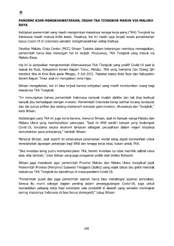 Kedatangan para TKA ini juga ironis karena, menurut Ikhsan, saat ini banyak warga Maluku dan