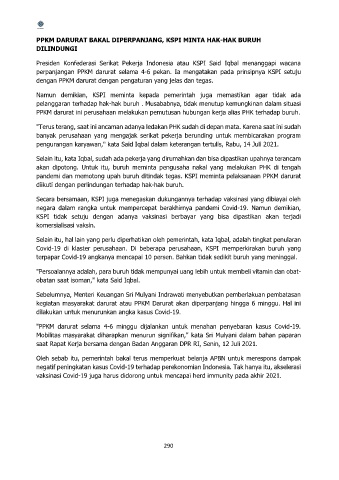 pandemi dan memotong upah buruh ditindak tegas. KSPI meminta pelaksanaan PPKM darurat