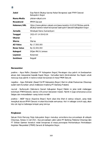 positive - Agus Ridho (Kasatpol PP Kabupaten Bogor) Penutupan dua pabrik ini berdasarkan