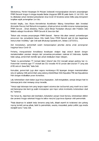 PPKM Darurat hingga 6 minggu kepada Badan Anggaran DPR RI pada Senin 12 Juli 2021. Hal