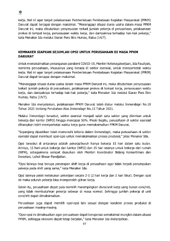 esensial dapat membuat opsi-opsi untuk memaksimalkan proses produksi," jelas Menaker Ida.