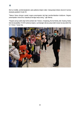 Benny menilai, pemberangkatan para pekerja migran akan mengurangi beban ekonomi karena