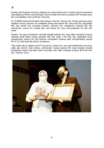 Menaker Ida juga memberikan apresiasi kepada pekerja film yang telah mengikuti program