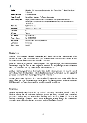 Judul Menaker Ida Mengajak Masyarakat Ikut Bangkitkan Industri Perfilman