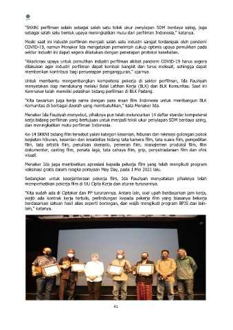 Menaker Ida juga memberikan apresiasi kepada pekerja film yang telah mengikuti program