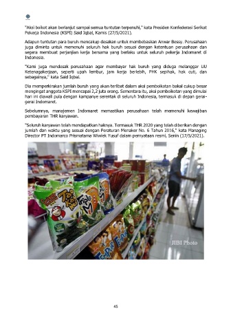 mengingat anggota KSPI mencapai 2,2 juta orang. Sementara itu, aksi pemboikotan yang dimulai